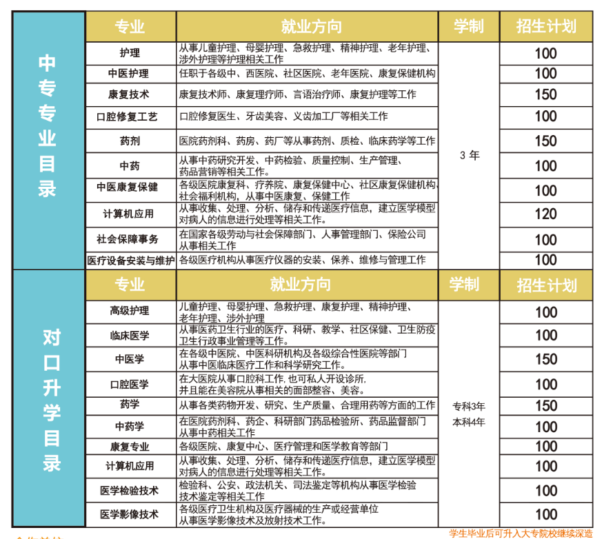 河北同仁医学院2021年春季招生专业有:护理中专班和口腔修复工艺中专班。学校面向应往届初中毕业生招生,无不良嗜好,无纹身,学习态度积极向上,身体素质良好,均可来校报名学习。