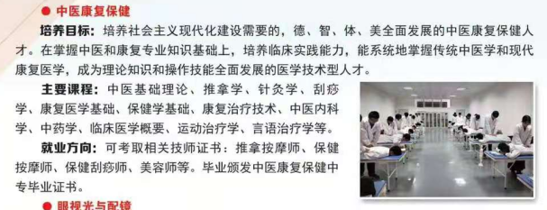刘老师第三个推荐的专业就是中医康复保健专业了。快节奏的社会现状,多数人们的身体处于亚健康状态,下班以后去按摩店,足疗店或者美容院等场所 按摩刮痧,泡泡脚,美容做个SAP都是很惬意的事情,这样的门店到处都是,学中医康复保健专业以后万全可以胜任这里的工作或者自己独立经营,虽然它没有医生那么高大上,但是他很接地气很实用,赚钱也不少的。