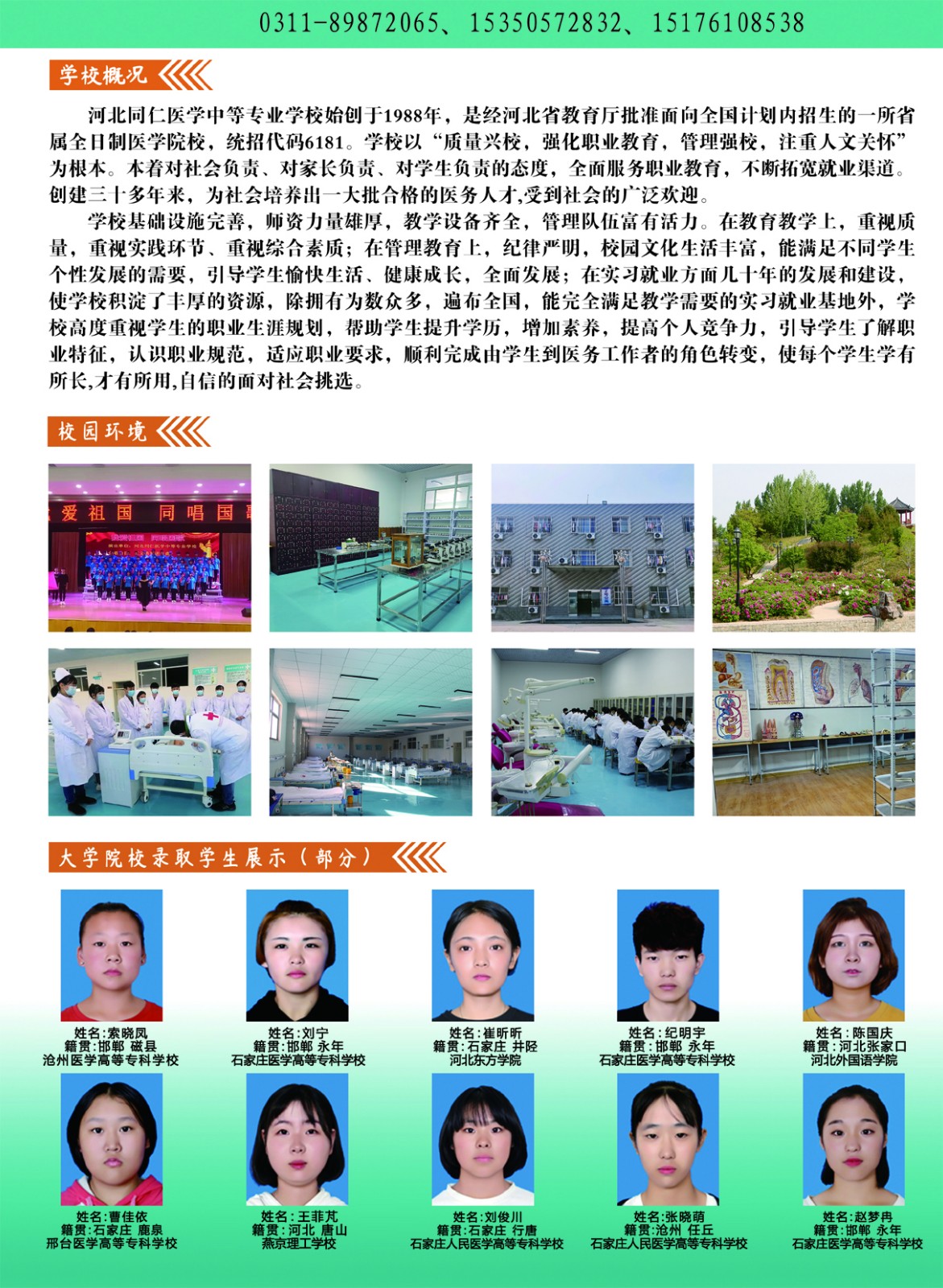 河北同仁医学院 招生热线:0311-89872065、15350572832微信刘老师、15176108538 微信