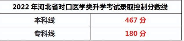 2021年河北省对口高考对口医学类录取控制分数线:医学本科484分,专科180分。