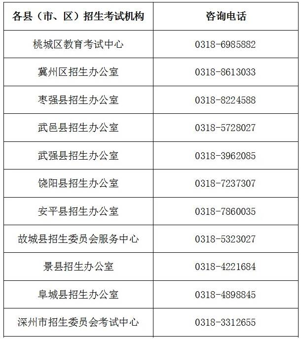 衡水中考报名点咨询电话: